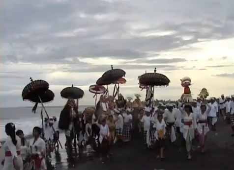 - dan juga dilaksanakan untuk kesucian jagat raya ini yang disimbolisasikan dengan labuh gentuh dengan labuhan sesaji ke laut serta,